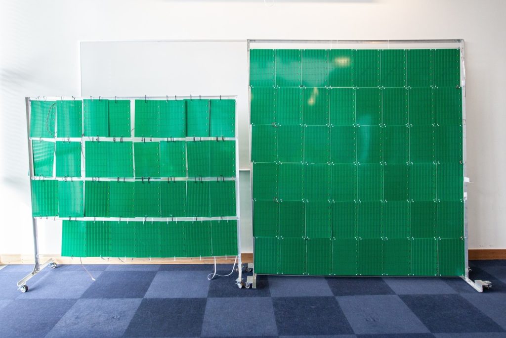 The prototype system CSAIL developed uses more than 3,000 antennas embedded into sheets, which are then hung on walls. In future applications, the antennas could adhere directly to the wall or be integrated during building construction.